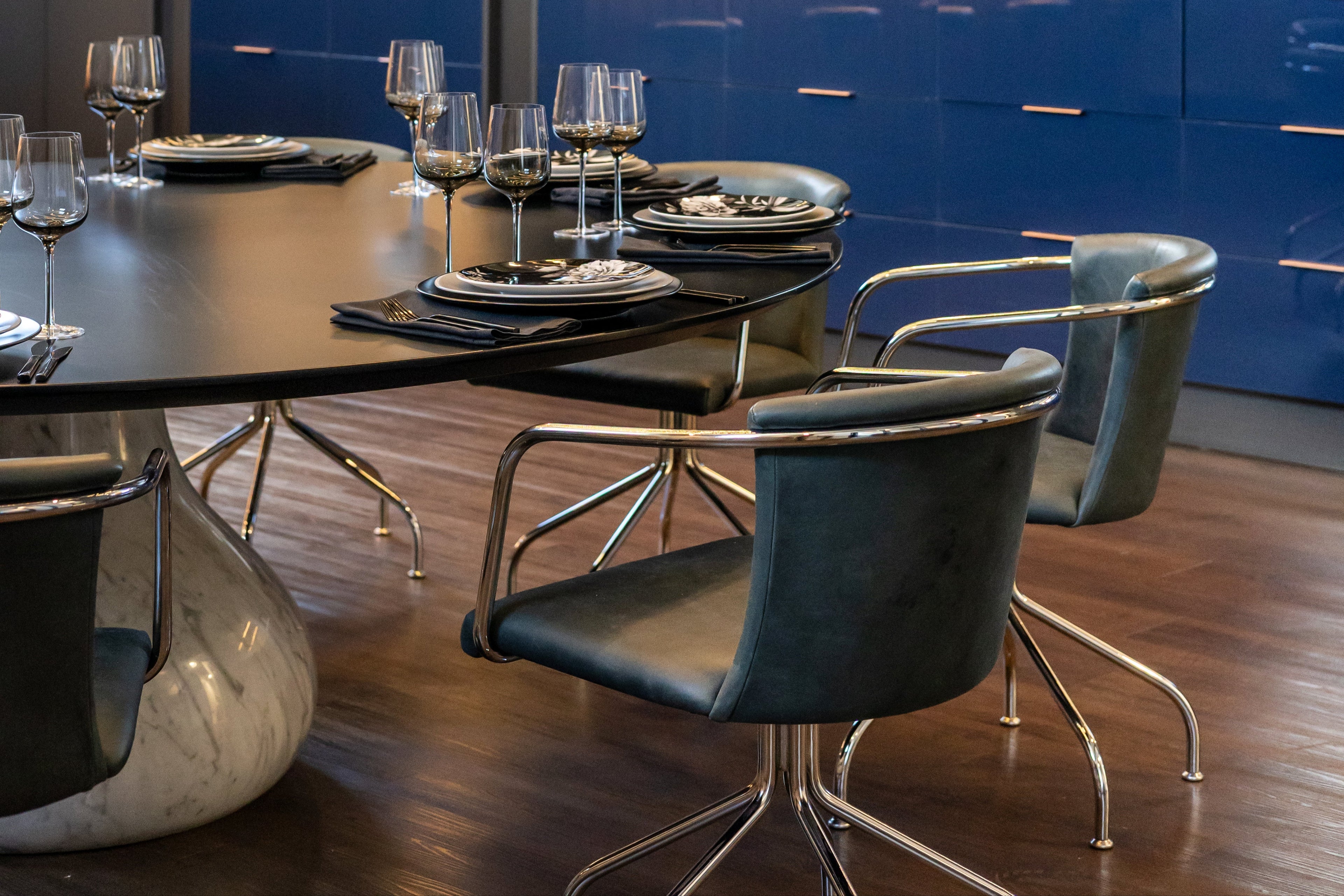 For this project, our client wanted a space that felt both inviting and impactful — a reflection of their bold, creative approach to events. We curated a palette of deep navy, rich maroon, and soft-to-dark greys, layering warm tones with striking textures and finishes. The result is a fitout that feels elevated yet welcoming, designed to inspire and impress in equal measure. Rich textures and confident finishes were layered to create an atmosphere that is inviting yet distinctive, aligning seamlessly with their ethos: “Your Taste, Our Style.” Just as Michael Scott Events matches a client’s vision with their own, this interior balances daring choices with timeless sophistication — a space designed to inspire, host, and impress.